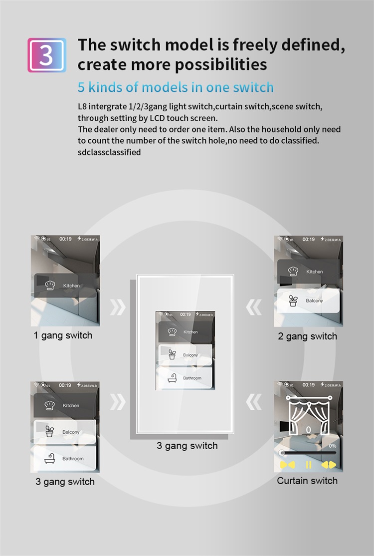 1/2/3 Gang Switch, Curtain Switch |